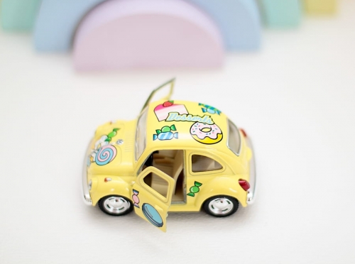 En charmig och fin leksaksbil i metall som ditt barn kommer att ha mycket roligt med. Byggd efter Volkswagens populära ?Classic? från 1967 och en riktig liten racer som åker av sig själv när du dragit den bakåt. Inte enbart en leksak som ni kommer ha mycket skoj med, utan även vackra dekorationer ståendes på en fin hylla.Finns i fyra olika pastellfärgerMått :10 x 5,5 cm