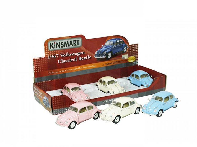 En charmig och fin leksaksbil i metall som ditt barn kommer att ha mycket roligt med. Byggd efter Volkswagens populära ?Beetle? från 1967 och en riktig liten racer som åker av sig själv när du dragit den bakåt.
