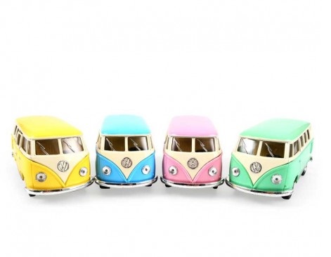 En charmig och fin leksaksbil i metall som ditt barn kommer att ha mycket roligt med. Byggd efter Volkswagens populära ?Buss? från 1967 och en riktig liten racer som åker av sig själv när du dragit den bakåt.