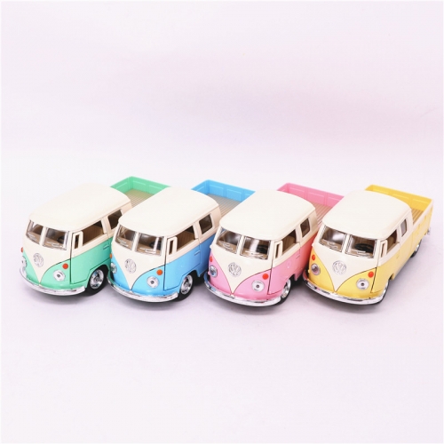 En charmig och fin leksaksbil i metall som ditt barn kommer att ha mycket roligt med. Byggd efter Volkswagens populära ?Bus Cab Pickup? från 1963 och en riktig liten racer som åker av sig själv när du dragit den bakåt.