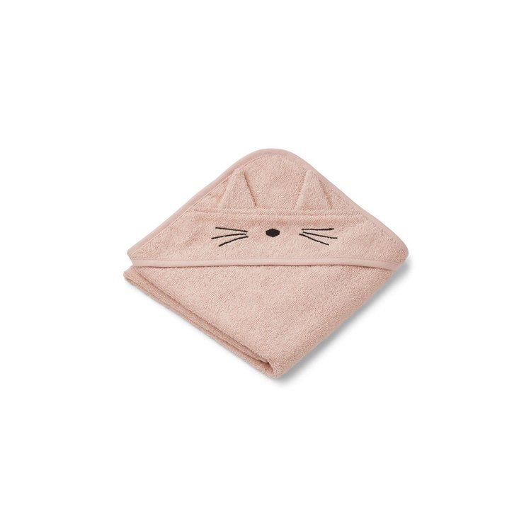 Liewood Albert cat rose, handduk med huva för nyfödda