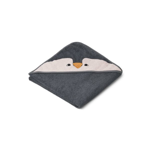 Liewood Albert penguin stone grey, handduk med huva för nyfödda