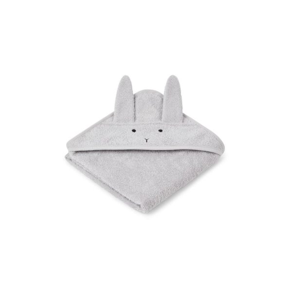 Liewood Albert rabbit grey hooded Towel, handduk med huva för nyfödda
