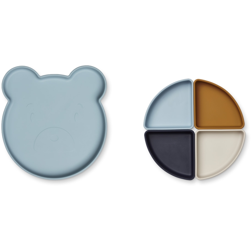 Liewood, Arne silikontallrik med fack, Mr Bear sea blue multi mix