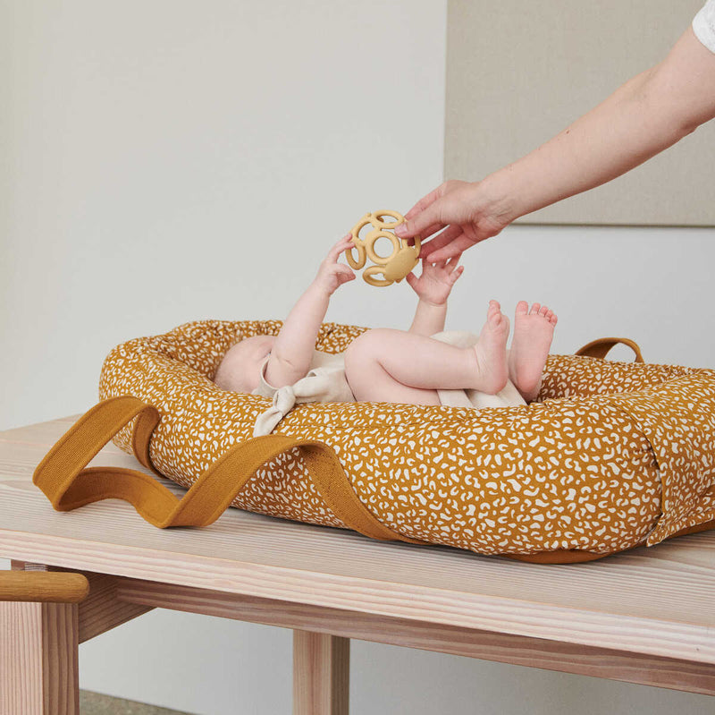 En fin kombo av babylift och babynest, kombinerar det bästa av två världar. Med två rejäla handtag så kan du enkelt flytta ditt barn på ett bra sätt, och babynestet är som bekant underbart tryggt för barn att sova i. Detta babynest är lite mer rejält än vanliga babynest, beroende på kombinationen att man kan använda den som en babylift. Designen är fin för att passa bra in i din övriga barnrumsinredning.