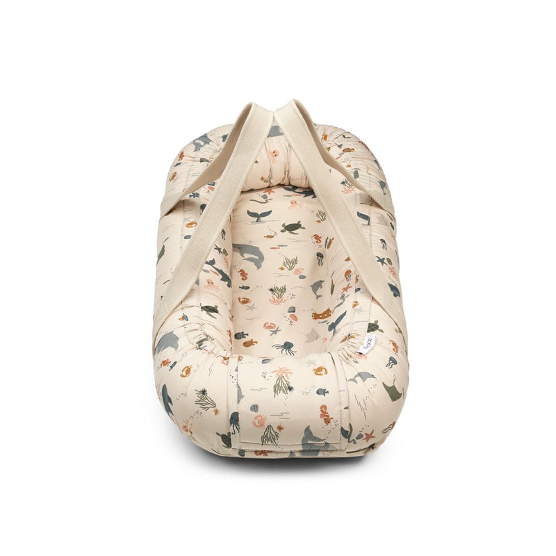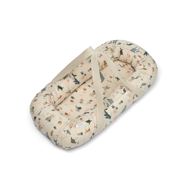 En fin kombo av babylift och babynest, kombinerar det bästa av två världar. Med två rejäla handtag så kan du enkelt flytta ditt barn på ett bra sätt, och babynestet är som bekant underbart tryggt för barn att sova i. Detta babynest är lite mer rejält än vanliga babynest, beroende på kombinationen att man kan använda den som en babylift. Designen är fin för att passa bra in i din övriga barnrumsinredning.