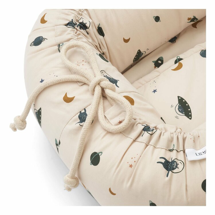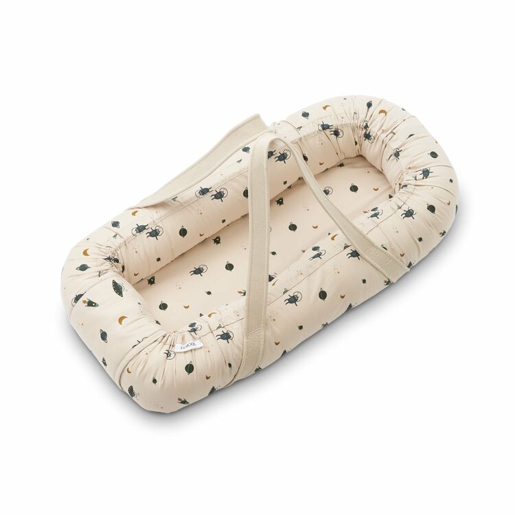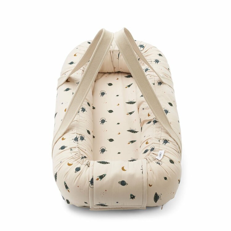 En fin kombo av babylift och babynest, kombinerar det bästa av två världar. Med två rejäla handtag så kan du enkelt flytta ditt barn på ett bra sätt, och babynestet är som bekant underbart tryggt för barn att sova i. Detta babynest är lite mer rejält än vanliga babynest, beroende på kombinationen att man kan använda den som en babylift. Designen är fin för att passa bra in i din övriga barnrumsinredning.