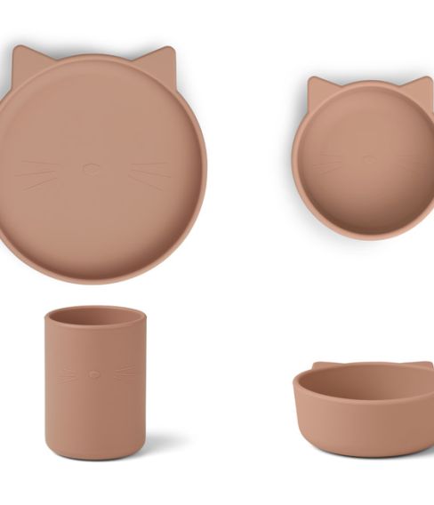 Ett vackert och användbart matset från danska Liewood i fyra delar. Med den fina tallriken, skålen, koppen och skeden kommer du och ditt barn att förena nytta med nöje. Liewoods välkända djurmotiv är designen för matsetet och finns med på alla delar.
