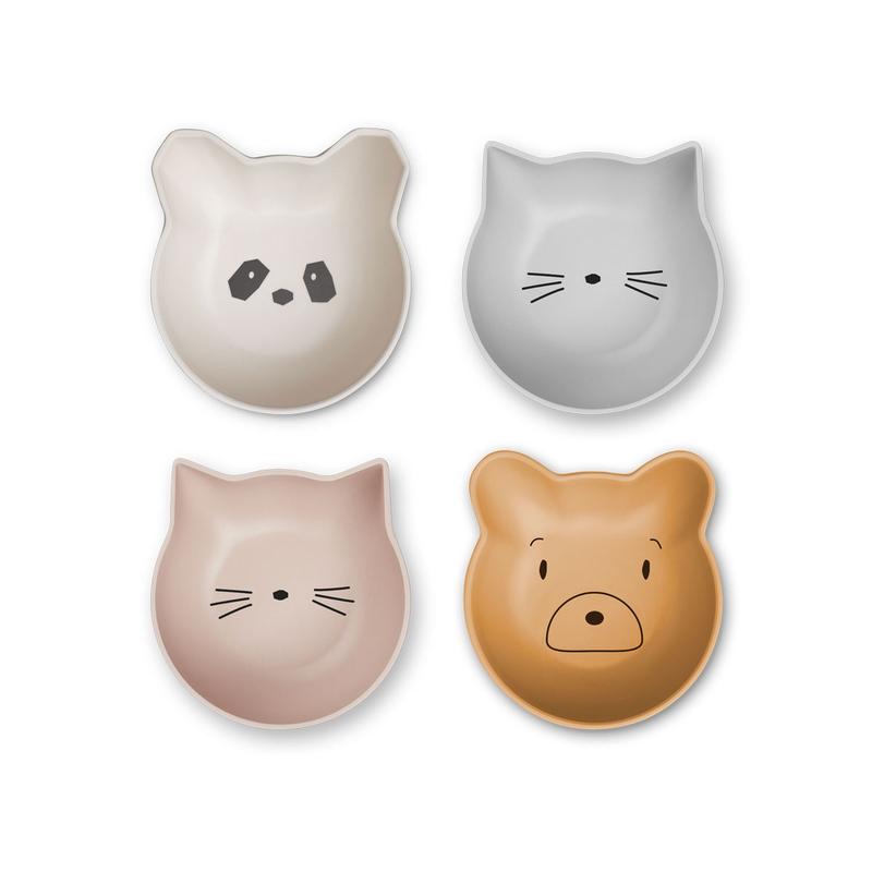 En praktisk och fin miljövänlig matskål från Liewood, med sina populära barnprodukter vill väl alla ha? Då är ett 4-pack ännu bättre, så du har flera barnskålar hemma under hela veckan. Dessa smarta skålar för barn kommer underlätta matstunden. Ditt barn kommer spilla mindre och ha roligt när det äter, optimalt för ett barns måltid. Självfallet är Liewoods patenterade vackra djurmotiv inspiration till dessa fina skålar.