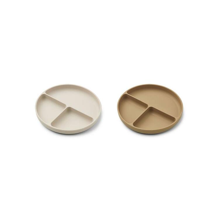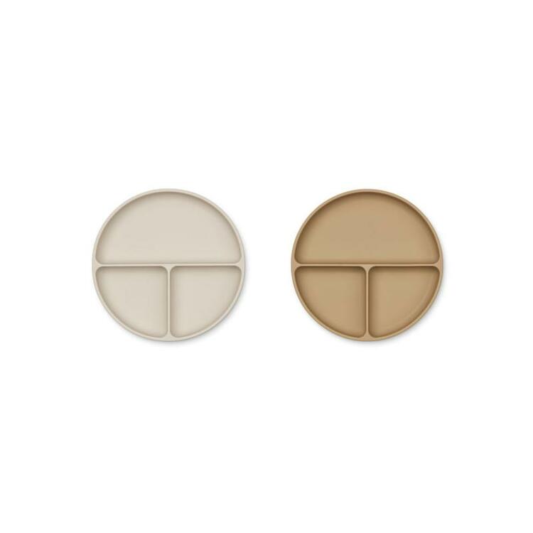 Liewood, Harvey 2-pack silikontallrik med fack, Sandy mix