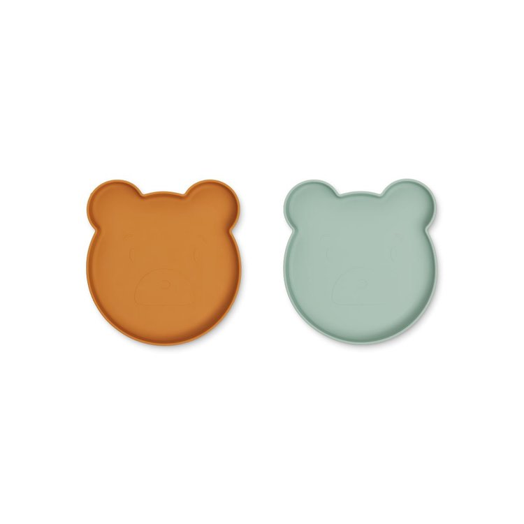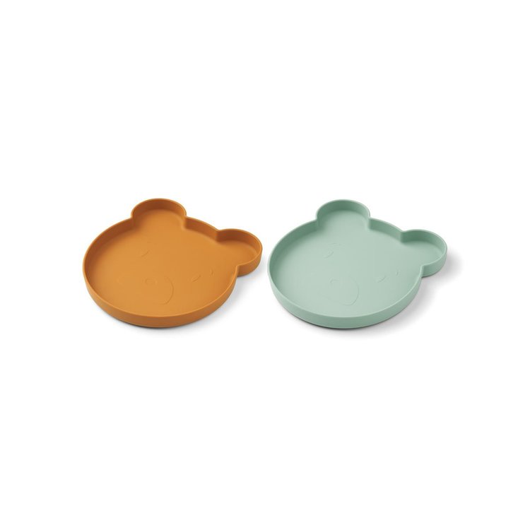 Liewood, Marty silikontallrik 2-pack, Mr bear mustard/peppermint mix