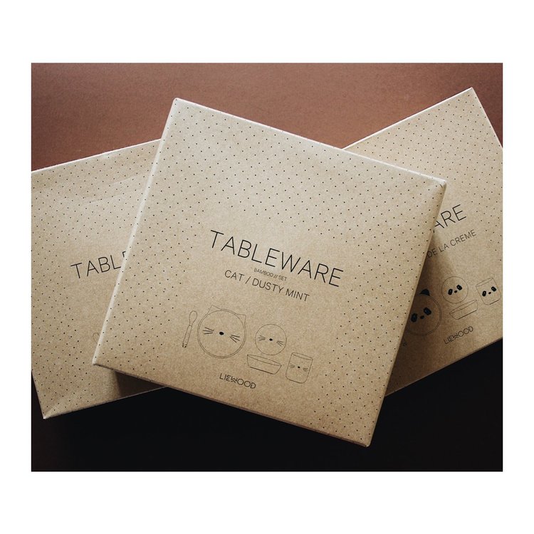 Ett vackert, tåligt och användbart matset från danska Liewood i fyra delar. Med den fina tallriken , skålen, skeden och koppen kommer du och ditt barn att förena nytta med nöje. Liewoods välkända kattmotiv är designen för matsetet och finns med på alla delar.
