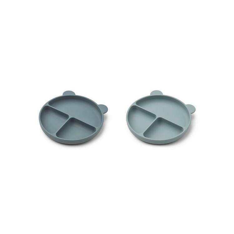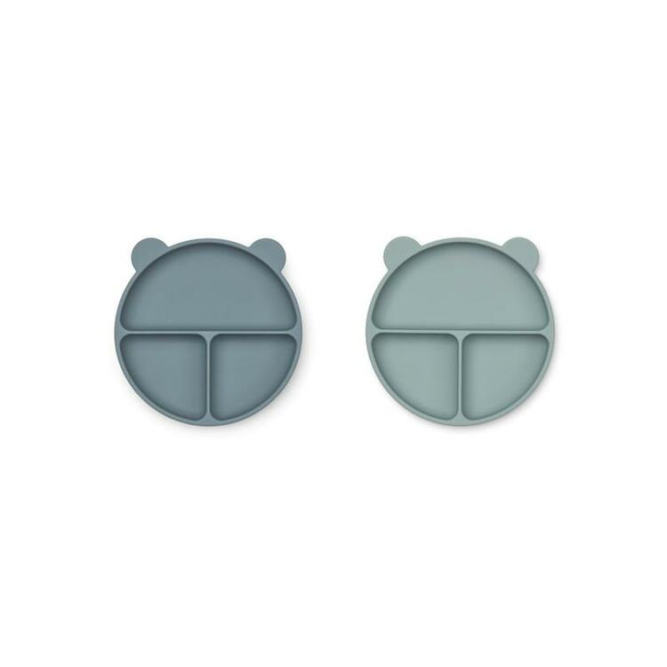 Liewood, Merrick 2-pack silikontallrik med fack, Whale blue mix