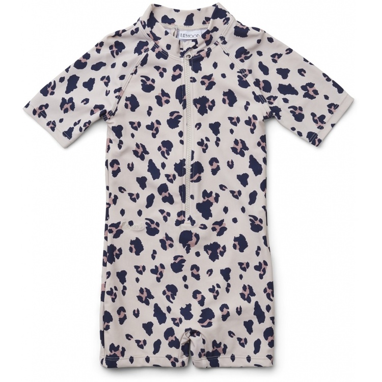 Underbar UV-dräkt för barn från Liewoods fina sommarkollektion.Uv-dräkt har ett vackert tryck av svarta leopardmönster på en fin beige nyans i UV-skyddande material. Material: 80% nylon, 20% spandex, oeko-tex, UPF 50Designer: Liewood