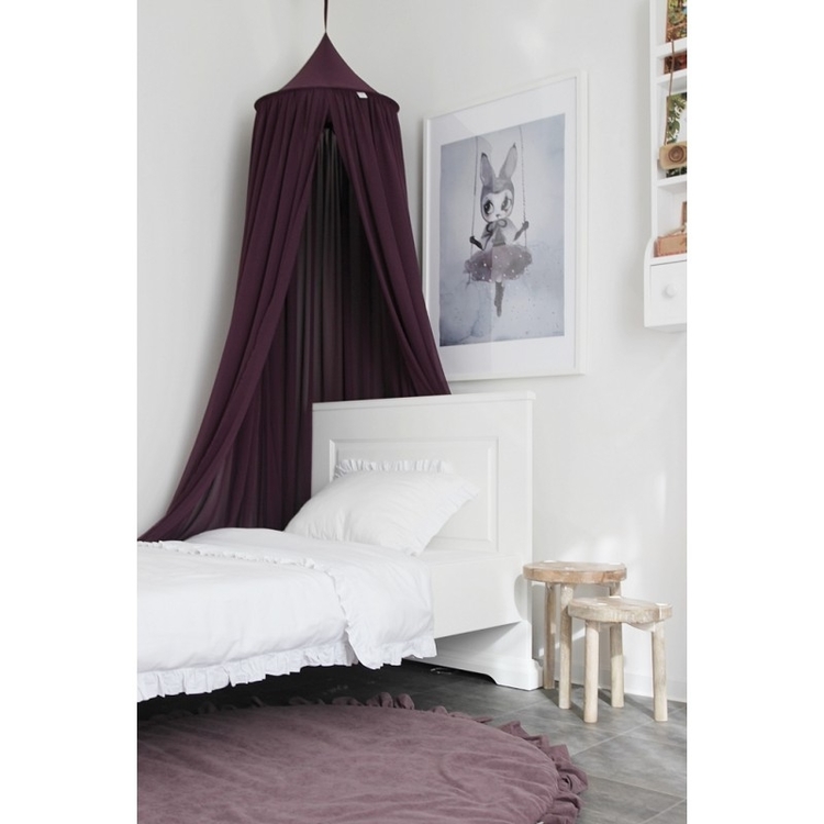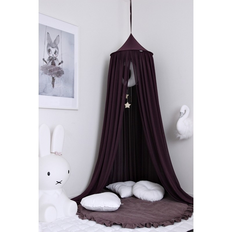 En mycket charmig och vacker lila sänghimmel tillverkad av högkvalitativt material som är lite ”genomskinligt”. Designad i en enkel form och i en typisk skandinavisk stil. I varje rum som denna används kommer en sagokänsla att spridas. Perfekt för att inreda barnrummet på ett bra sätt. Sänghimmeln är dessutom förberedd med en praktisk anordning i mitten för att kunna hänga favoritsakerna.