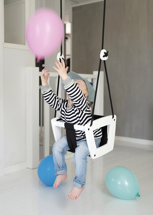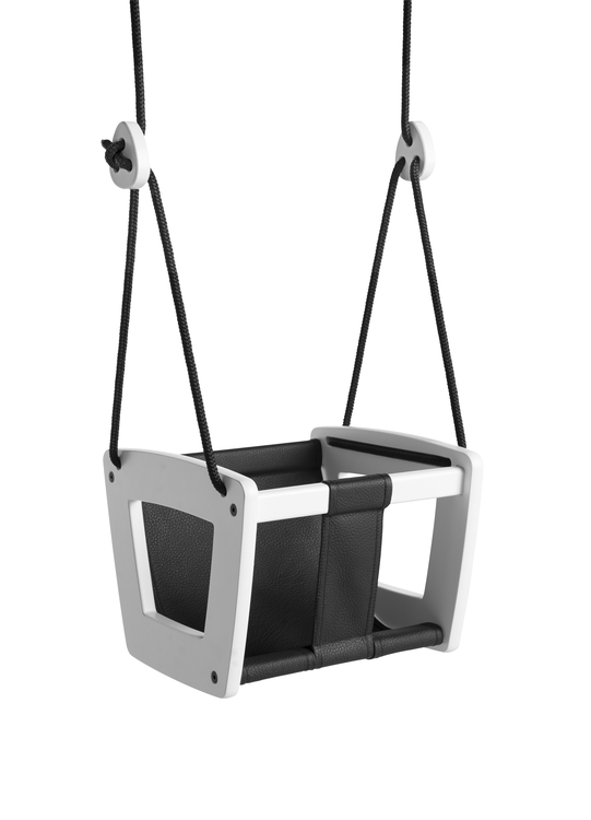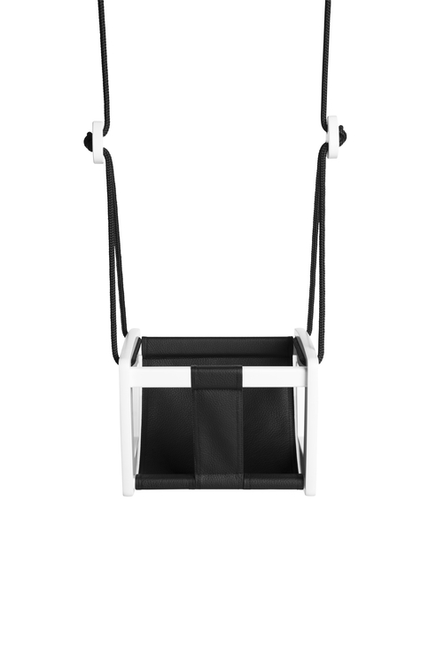 Det är en rolig och stilren gunga för den allra minsta familjemedlemen, designad med omtanke och precision. Den handgjorda sittdynan i dubbelvikt äkta läder, finns tillgänglig i svart eller vit, och kombinerar vackert såväl med en gunga i vit som i naturek. Lillagunga Småbarn är säker och byggd för att hålla. Dessutom är den ett mycket vacker inredningsdetalj i barnrummet eller på uteplatsen.