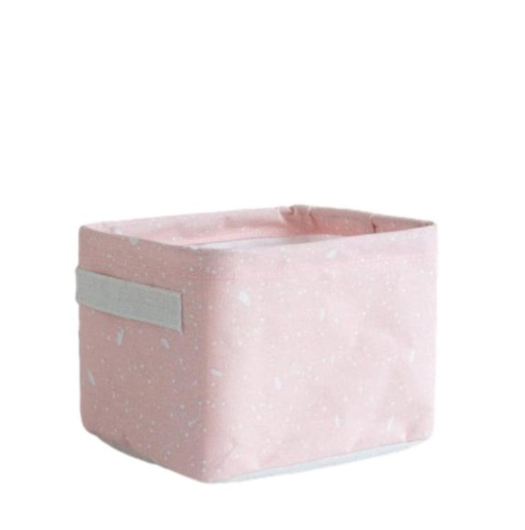 Söt och praktisk liten förvaringskorg som kommer hjälpa dig att hålla ordning samtidigt som du skapar en vacker barnrumsinredning.  De två handtagen på sidorna gör den enkelt att flytta när du vill.  Mått: 14 cm x 20 cm x 15,5 cm Material: Bomull