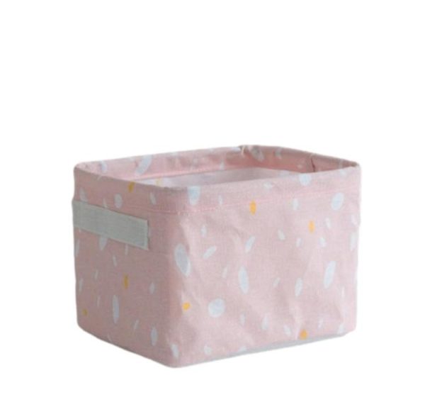 Söt och praktisk liten förvaringskorg som kommer hjälpa dig att hålla ordning samtidigt som du skapar en vacker barnrumsinredning.  De två handtagen på sidorna gör den enkelt att flytta när du vill.  Mått: 14 cm x 20 cm x 15,5 cm Material: Bomull