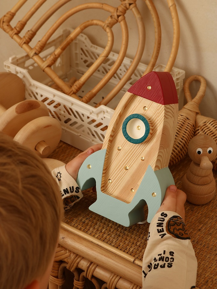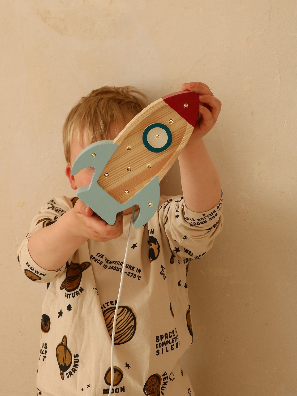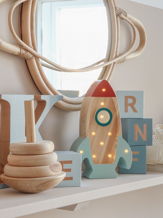En fantastisk lampa till barnrummet i form av en rymdraket som kommer att lyfta din inredning samtidigt som den fungerar som en perfekt nattlampa åt ditt barn.
