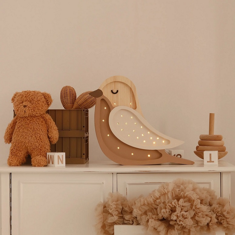Little Lights, Nattlampa till barnrummet, Stor fågel Coffee wood