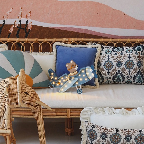 Little Lights, Nattlampa till barnrummet, Vintage flygplan blå