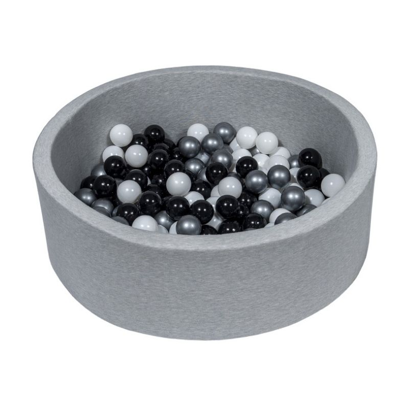 Ljusgrå bollhav BASIC, 90×30 med bollar (svart, silver, vit)