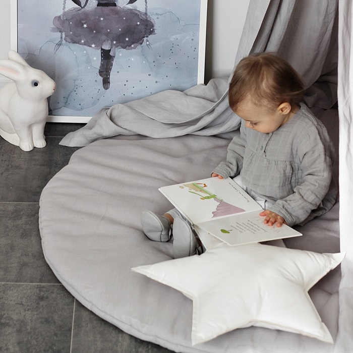Ljusgrå exklusiv lekmatta av linne, Pure Nature, Cotton&Sweets