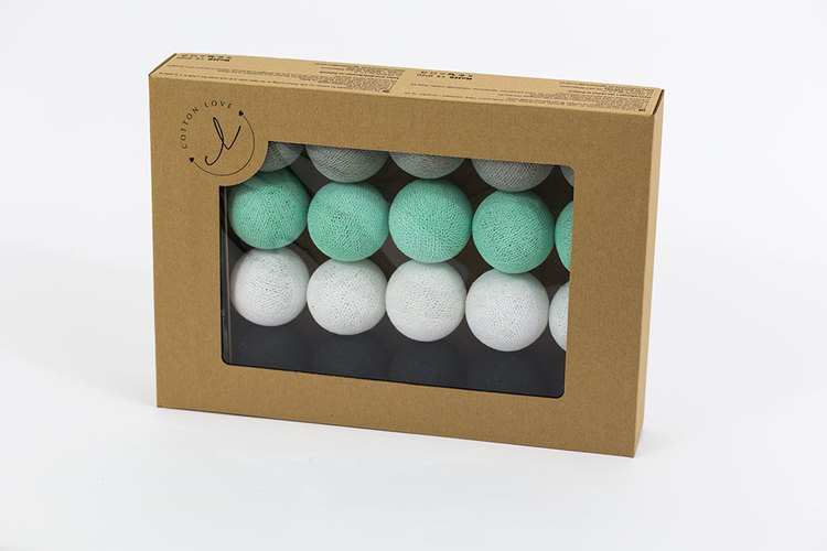 Ljusslinga Mint Marti. En mycket vacker ljusslinga om totalt 20 bollar. Den perfekta ljussättningen för din barnrumsinredning. Lamporna ger ett behagligt och stämningsfullt ljus och har flertalet användningsområden, allt från nattlampa till dekoration vid kalas. Du kan exempelvis lägga ljusslingan runt en spegel, eller i en stor glasvas och du har enkelt skapat dig något unikt. Bara fantasin…