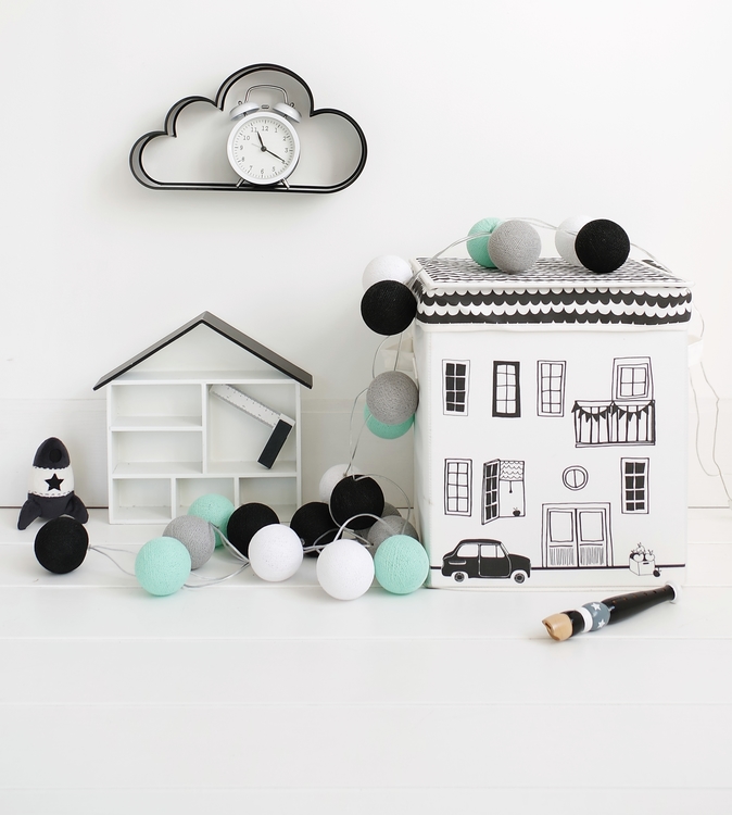Lamporna ger ett behagligt och stämningsfullt ljus och har flertalet användningsområden, allt från nattlampa till dekoration vid kalas. Du kan exempelvis lägga ljusslingan runt en spegel, eller i en stor glasvas och du har enkelt skapat dig något unikt. Bara fantasin sätter gränserna och du har massa möjligheter med dessa ljusbollar när det kommer till att inreda barnrummet. Denna ljusslinga består av totalt 20  bollar som finns i otaliga färgkombinationer och nyanser.