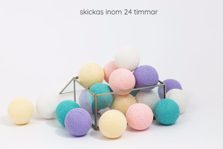 Lamporna ger ett behagligt och stämningsfullt ljus och har flertalet användningsområden, allt från nattlampa till dekoration vid kalas. Du kan exempelvis lägga ljusslingan runt en spegel, eller i en stor glasvas och du har enkelt skapat dig något unikt. Bara fantasin sätter gränserna och du har massa möjligheter med dessa ljusbollar när det kommer till att inreda barnrummet. Denna ljusslinga består av totalt 20 eller 35 bollar som finns i otaliga färgkombinationer och nyanser.