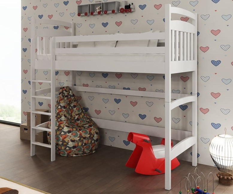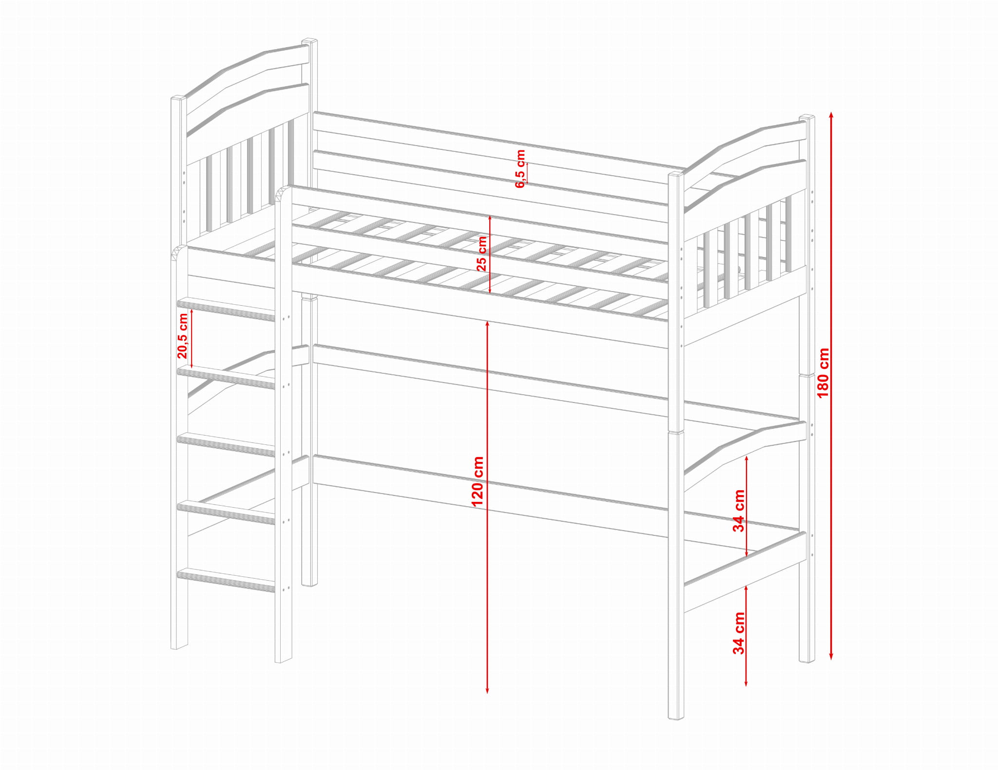 På jakt efter den perfekta loftsängen? Här är den! En stabil säng i stilsäker design, för många år av söta drömmar! Sängen är gjord av massiv furu vilket gör den stabil och rejäl. Idealisk att både leka som sova i. På vår fina loftsäng Mika har man tänkt till ordentligt för att optimera golvytan i barnrummet. Vi lovar att sängen kommer bli ditt barns favorit, och inte bara för att sova…