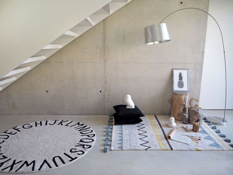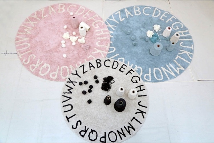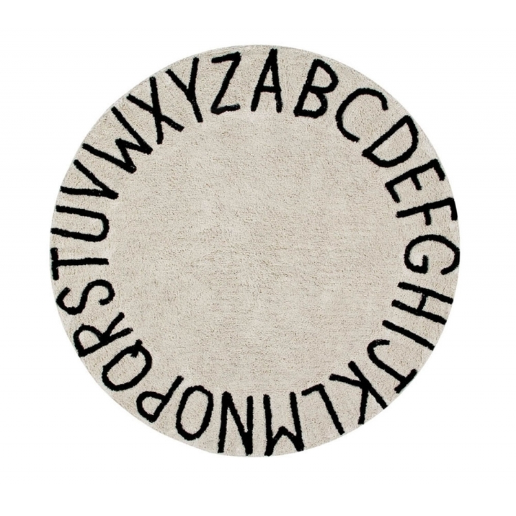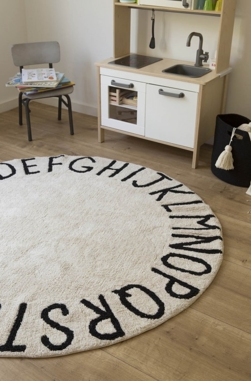 Lorena Canals rund matta till barnrummet, abc natural/black
