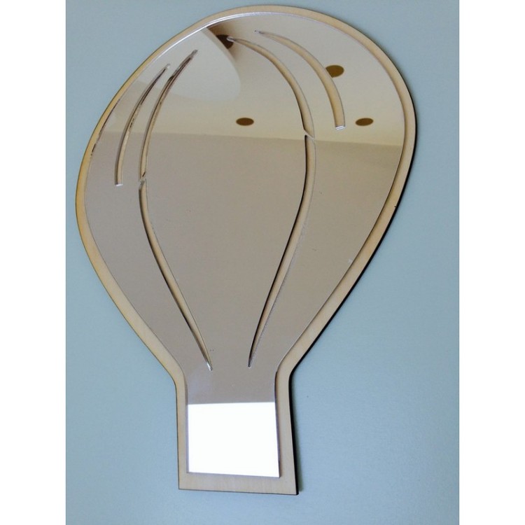 En vacker spegel i form av en luftballong gjord av akryl, infällt i en träskiva för hållbarhet..En vacker dekoration i barnrummet.