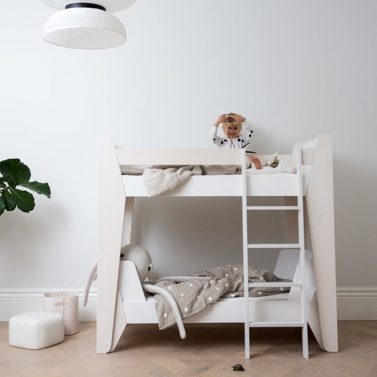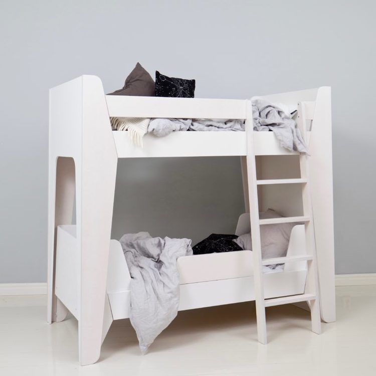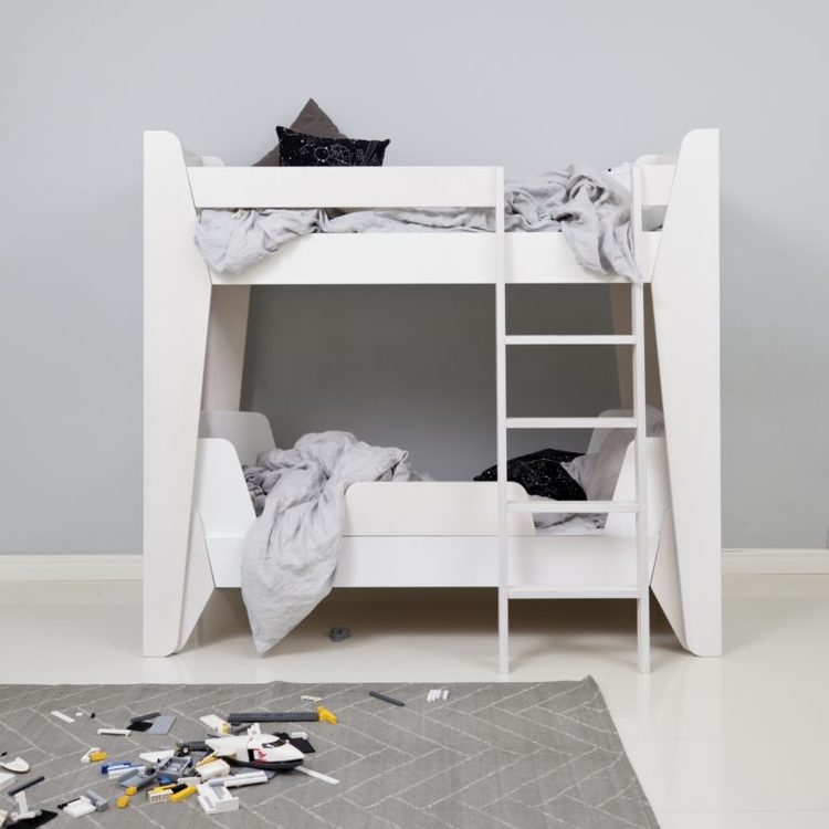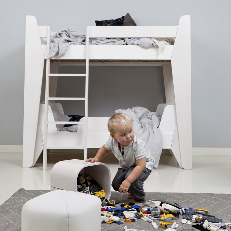 Denna våningssäng är en unik kombination av en loftsäng och en juniorsäng, vilket gör att den passar perfekt för syskon eller för att ha under barnets uppväxt. Den undre sängen kan placeras rakt under den övre, men kan även ställas rakt ut från sängen, så att man får plats med ett litet skrivbord eller en lekhörna bredvid. Om den är till två syskon och de en dag ska bo i varsitt rum, är det…