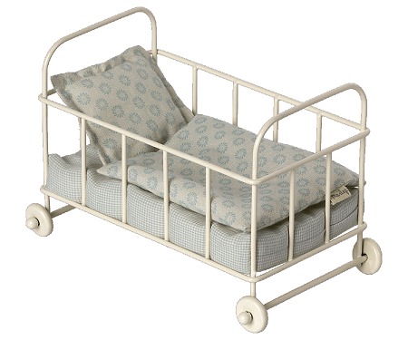 Wow, en fin vintage spjälsäng för de allra minsta, passar till alla typer av dockhus och kommer ge ditt barn ett massa glädje.Oerhört detaljrik produkt som är helt handgjord av det populära företaget Maileg. Mått: L: 16 cm, B: 8,5 cm H: 10 cm Ålder: Från 3 år. Material: Metall/BomullKaninen ingår ej :)Designer: Maileg
