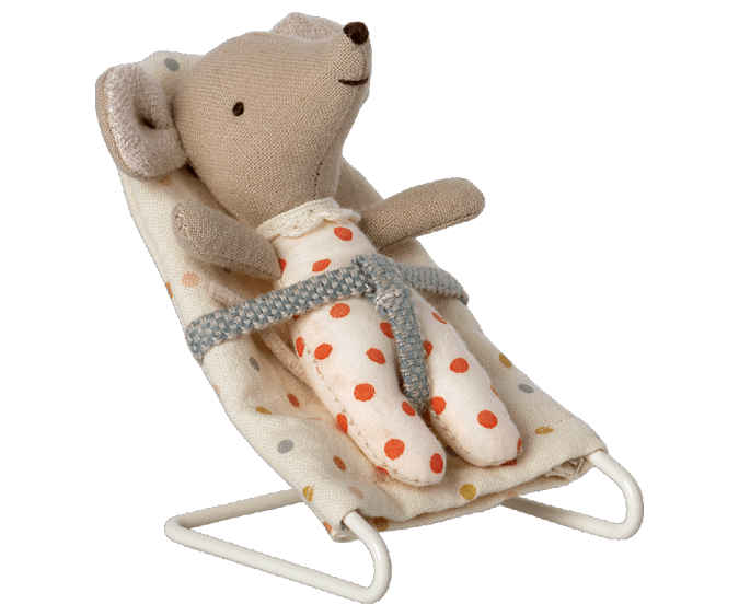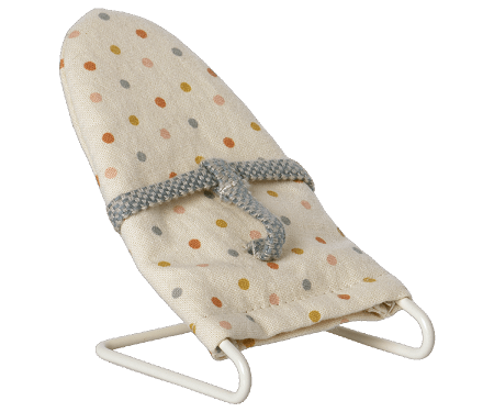 Den finaste minsta babysittern du någonsin sett, vi lovar. Underbart mönster i bomullstyget så att de minsta dockorna kan sitta bra. Passar perfekt till dockhuset givetvis, eller på andra ställen i barnrummet.Oerhört detaljrik produkt som är helt handgjord av det populära företaget Maileg. Ålder: Från 3 år.Mått: 7 cm. Material: Metall, Bomull Designer: Maileg