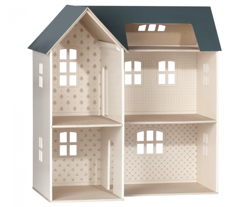 Ett tidlöst och fantastiskt dockhus med vackra väggar från danska Maileg som ditt barn kommer att älska från första stund. Dockhuset består av fyra rum samt en vindsvåning med superfina fönster. Detta dockhus kommer, förutom att bli ditt barns favorit, att bidra till en underbar banrumsinredning.
