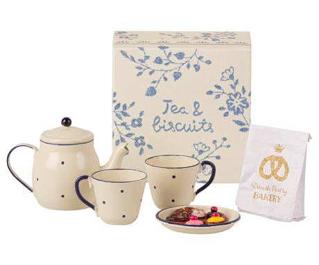 Man måste ju ha lite fika inne i dockhuset, inte sant? Med detta underbara fika set blir varje maileg äventyr roligare.Oerhört detaljrik produkt som är helt handgjord av det populära företaget MailegSetet innehåller:koppar, fat, tekana och kakor för två Ålder: Från 3 år.Material: metall, porslin Designer: Maileg