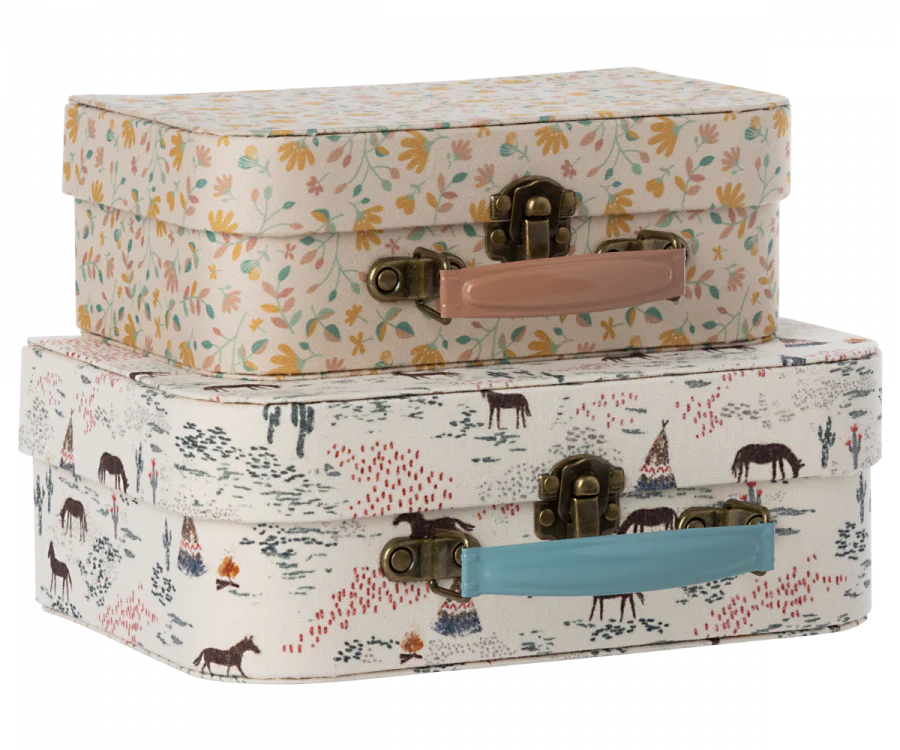 Underbara och fina praktiska förvaringslådor från danska Maileg i form av fina koffertar.