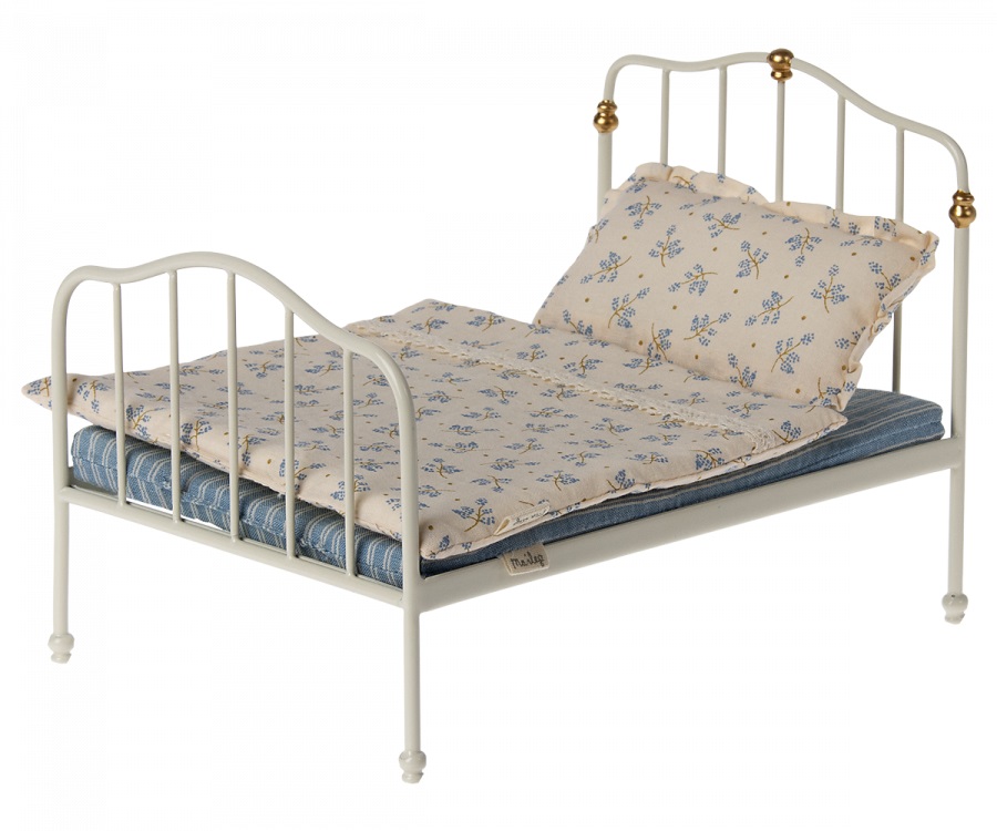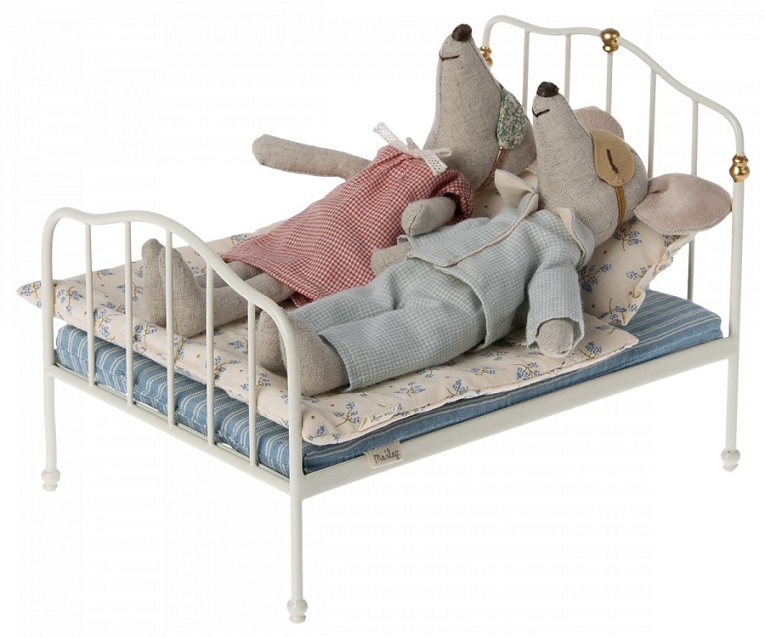 Sovdags i dockhuset, och ingen kan sova bättre än i denna underbara dubbelsäng i vintage-stil.Oerhört detaljrik produkt som är helt handgjord av det populära företaget Maileg.Ålder: Från 3 år.Mått: 14 x 13,5 cm Material: Metall, bomull. Obs! Kaninen ingår ej. Designer: Maileg