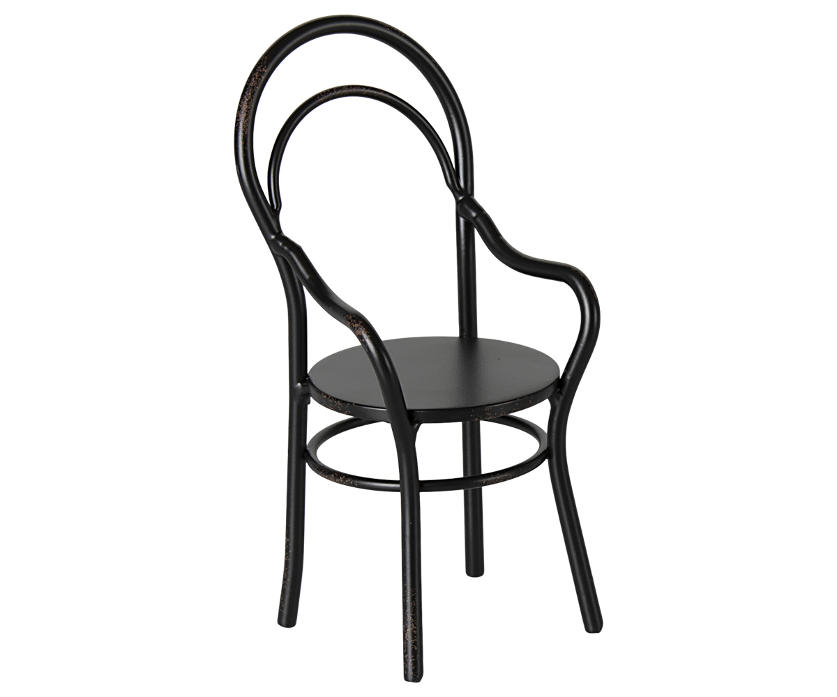 En vacker stol i vintagestil med armstöd ? perfekt för en bekväm stund. Passar dessutom fint i dockskåpet!Oerhört detaljrik produkt som är helt handgjord av det populära företaget Maileg.Höjd: 13 cm Bredd: 6 cm Vikt: 140 gramRekommenderad ålder: Från 3 år Material: MetallDesigner: Maileg