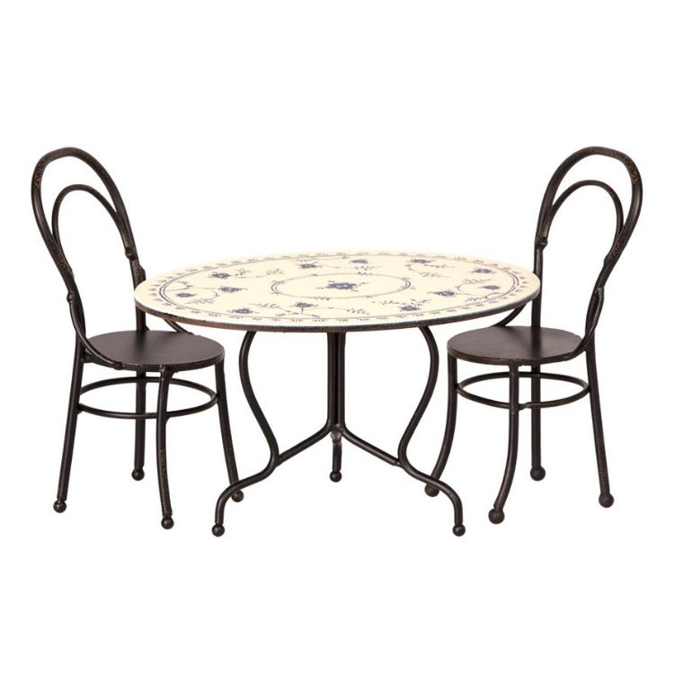 En härligt fin stol med fin design och smarta armstöd, perfekt för miniatyrdockan eller till dockhuset.Oerhört detaljrik produkt som är helt handgjord av det populära företaget Maileg.OBS, en stol, bilden med bordet är enbart en exempelbildMått: Höjd 13 cm Ålder: Från 3 år. Material: Metall.Designer: Maileg
