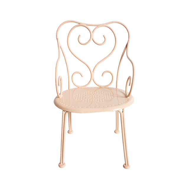 Vi saknar ord för denna snygga vintagestol, anpassad att fungera till varje rum i dockhusetOerhört detaljrik produkt som är helt handgjord av det populära företaget Maileg.Mått:18x12x10 cm. Ålder: Från 3 år. Material: Metall.Designer: Maileg