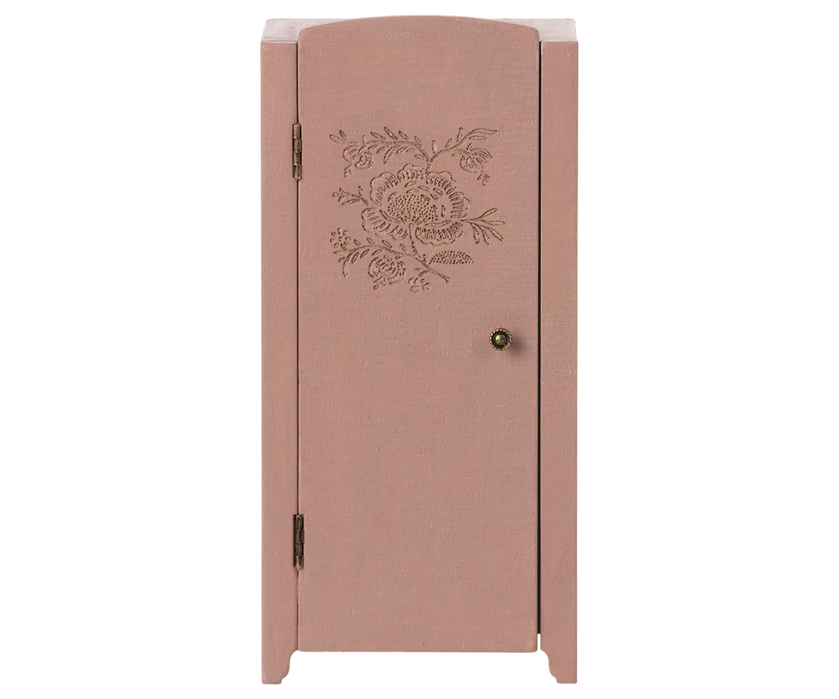 Vem vill inte ha denna fina garderob för att hänga de små dockkläder som finns hemma. Garderoben har ett vackert blomavtryck på framsidan. Passar perfekt till dockhuset eller varför inte på en fin hylla!Oerhört detaljrik produkt som är helt handgjord av det populära danska företaget Maileg. Mått: 23 x 11 cm Material: TräDesigner: Maileg