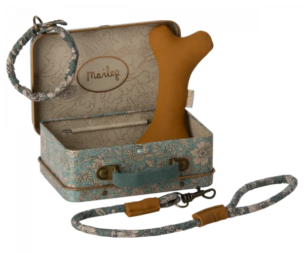Dessa underbara tillbehör är allt du behöver för din söta plyschvalp! Setet innehåller ett ben, krage och koppel i en vacker väska.