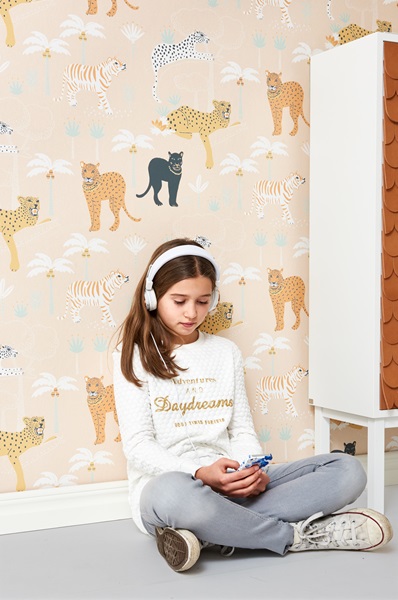 Majvillan, tapet till barnrummet Black panther, creamy orange