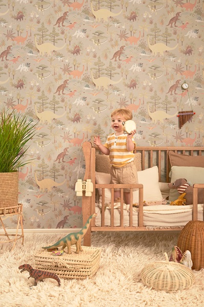Majvillan, tapet till barnrummet Dinosaur vibes, soft green