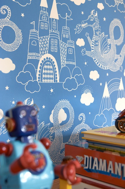 Majvillan, tapet till barnrummet Drakhimlen, mörkblå