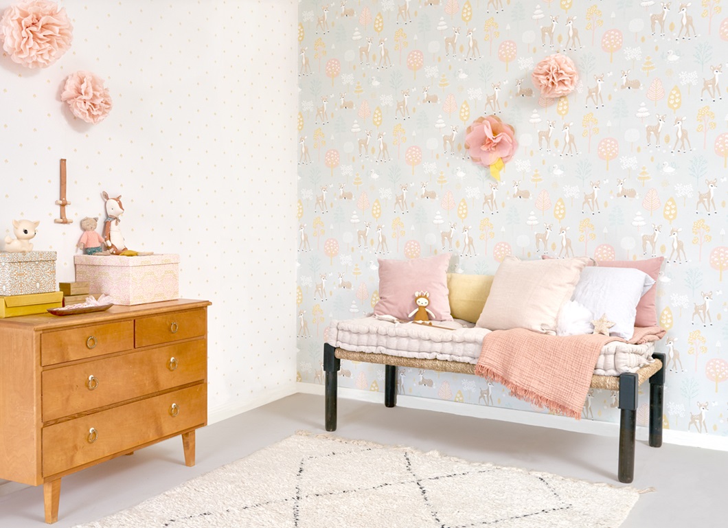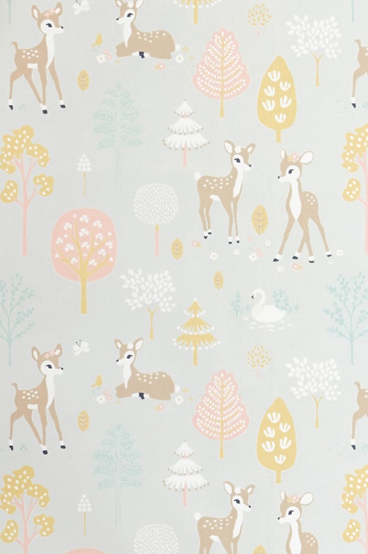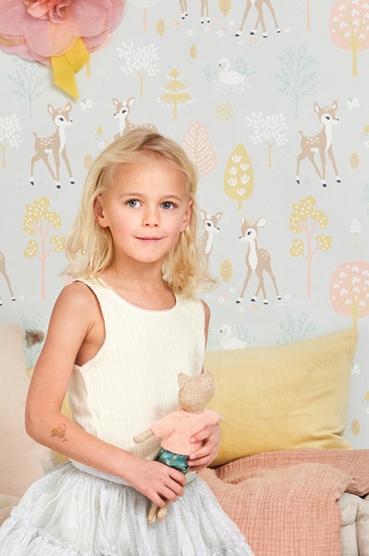 Majvillan, tapet till barnrummet Golden woods, soft grey