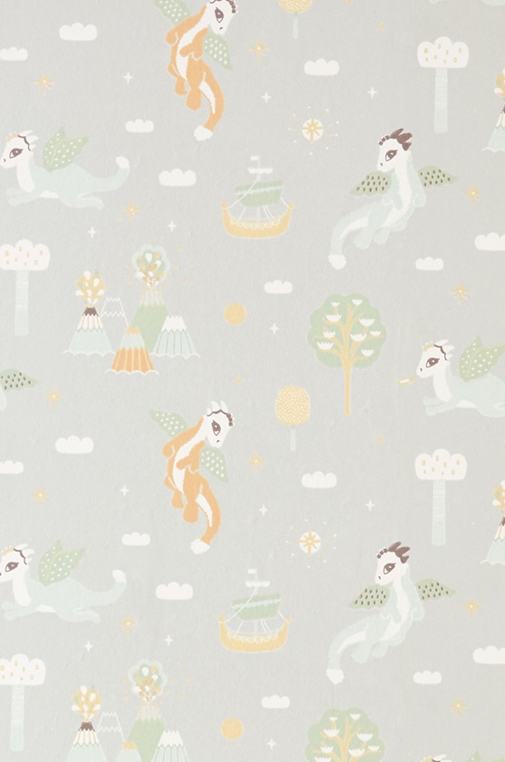 Majvillan, tapet till barnrummet Magical adventure, soft grey